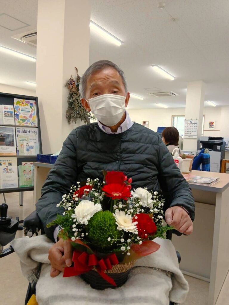 今年も静岡難病ケア市民ネットワーク様から、クリスマスカラーの素敵なフラワーアレンジメントをいただきました。