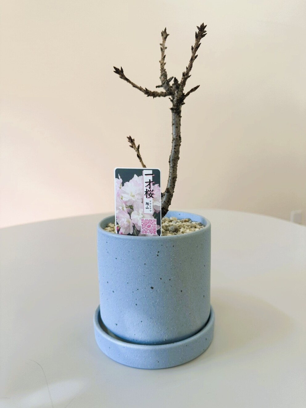 淡い水色の鉢に似合う素敵な桜が咲くのを今から楽しみにしています。